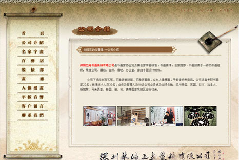 深圳市雅艺林艺术品有限公司成立于2006年,是深圳市政府重点推荐的集工艺品、礼品、名家字画、高仿真品、肖像画、文房四宝、书画装裱于一体的书画企业。企业承接机关单位、酒店、会所、酒吧、办公室、家庭字画等设计制作。