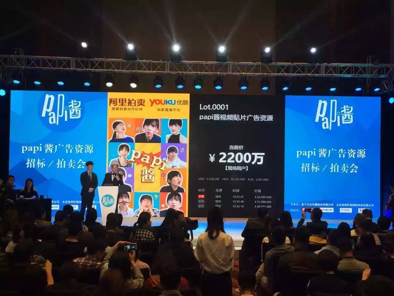 在招标会现场仅仅3秒时间,拍卖标价直奔1000万。最终来自上海的丽人丽妆公司以2200万成功竞标,获得papi酱5月21日视频结束后彩蛋时间的广告位,时长不限。