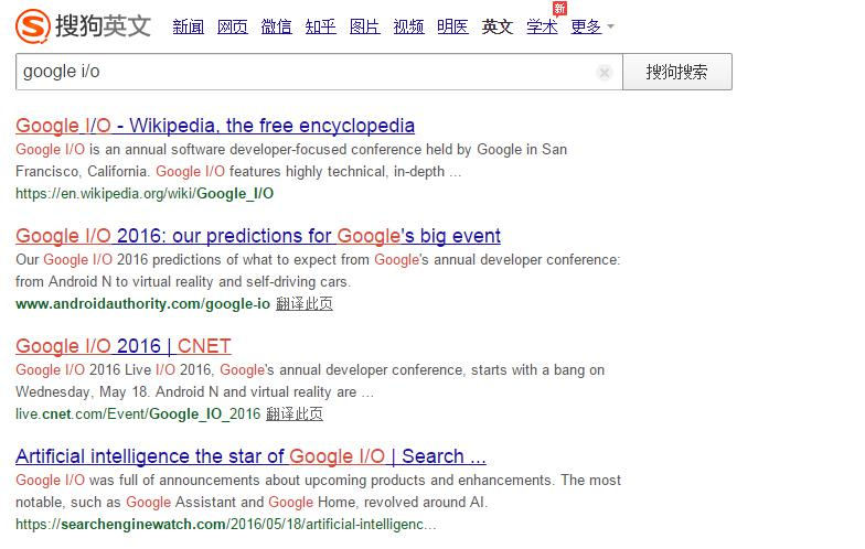 搜狗英文搜索结果页面