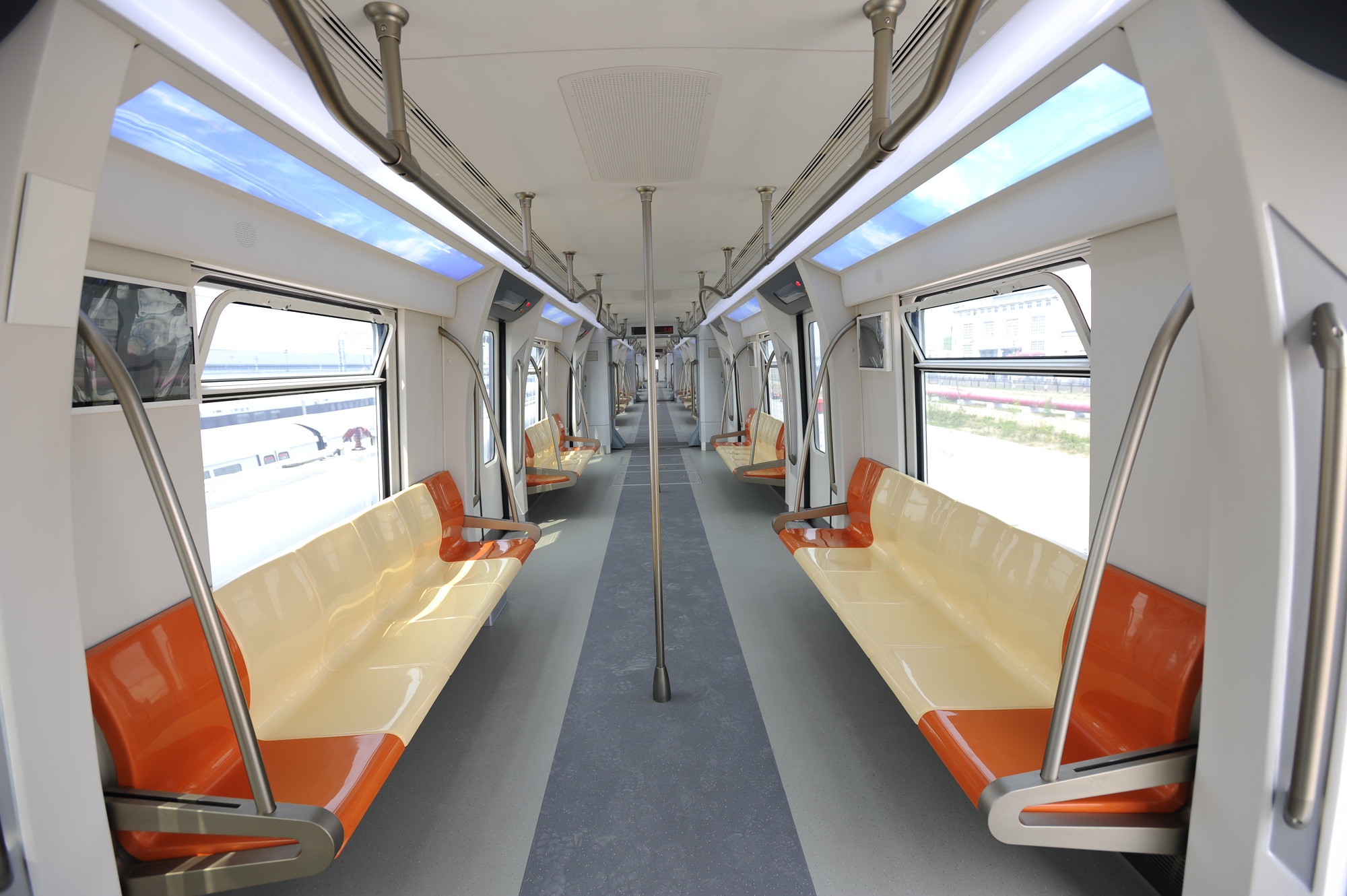 安全方面,该车采用了大量先进的安全技术,安全性能达到国际领先水平。车辆采用新型高强度铝合金车体,结构强度比现行标准提高了近1倍,更加安全可靠。防火上,列车满足世界上最严格的BS6853防火标准,高温耐火时间达30分钟以上。为了提高防火能力,还首次加装了高压细水雾灭火系统,该系统可在需要时迅速喷出细水雾,消除火灾隐患,保护乘客安全。另外,列车配备了先进的无线TPMS胎压监测装置,能对车辆运行中轮胎的胎压、胎温、漏气等状态进行实时监测,保障运行安全。车辆还配备了先进的防滑保护系统,可以全天候安全运行。